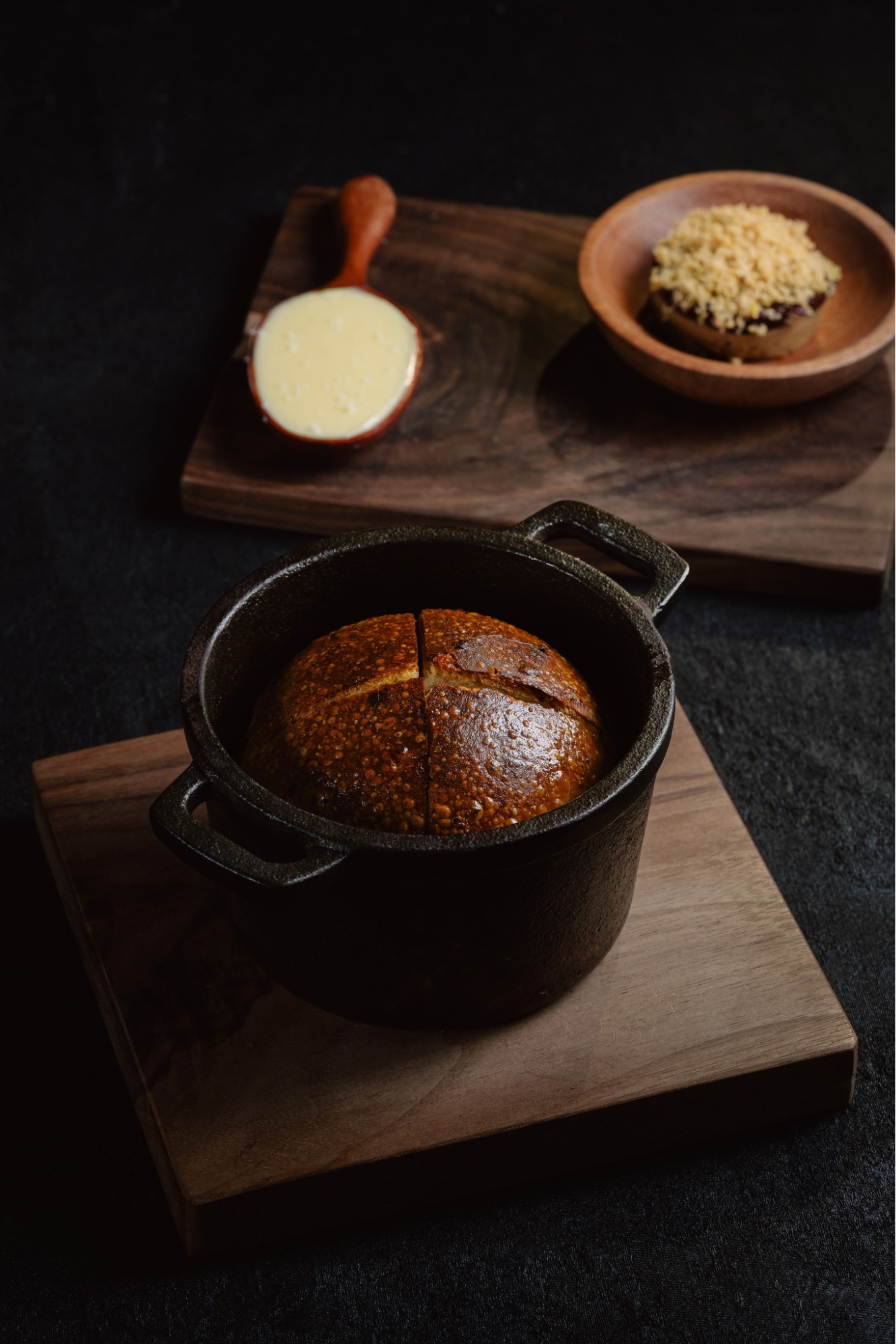 The bridge between the ingredients is our signature Smoke Butter. Crafted in-house, we take artisanal local butter and infuse it with cold smoke over a selection of aromatic woods. This creates a velvety, fragrant binder that unites the flaked eel meat into a decadent mixture.